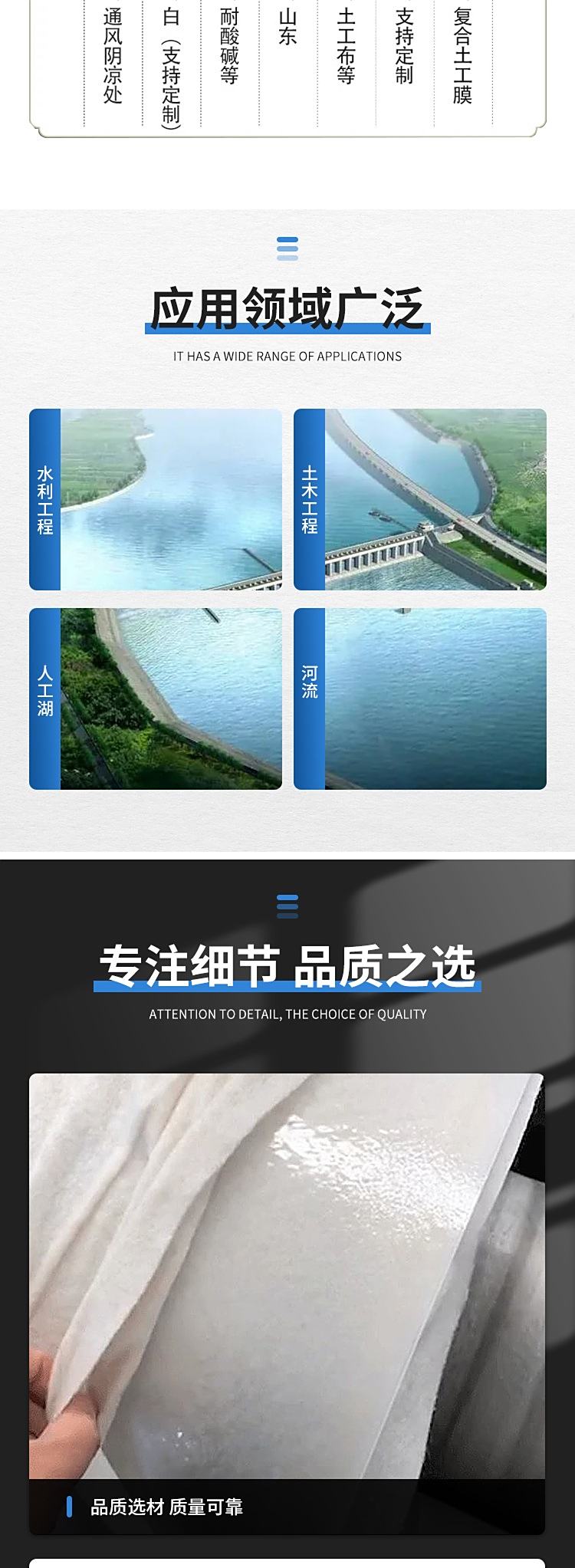 400g两布一膜 人工湖防渗膜 养殖池蓄水池复合土工膜