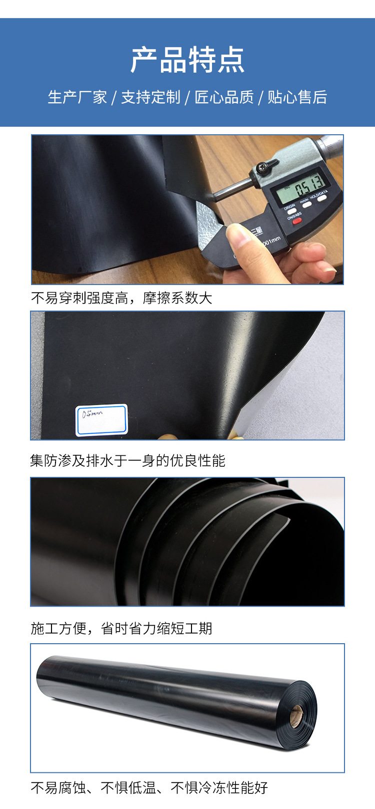 汇杰 HDPE 隧道矿井施工垃圾填埋场覆盖膜 养殖渗水膜土工膜